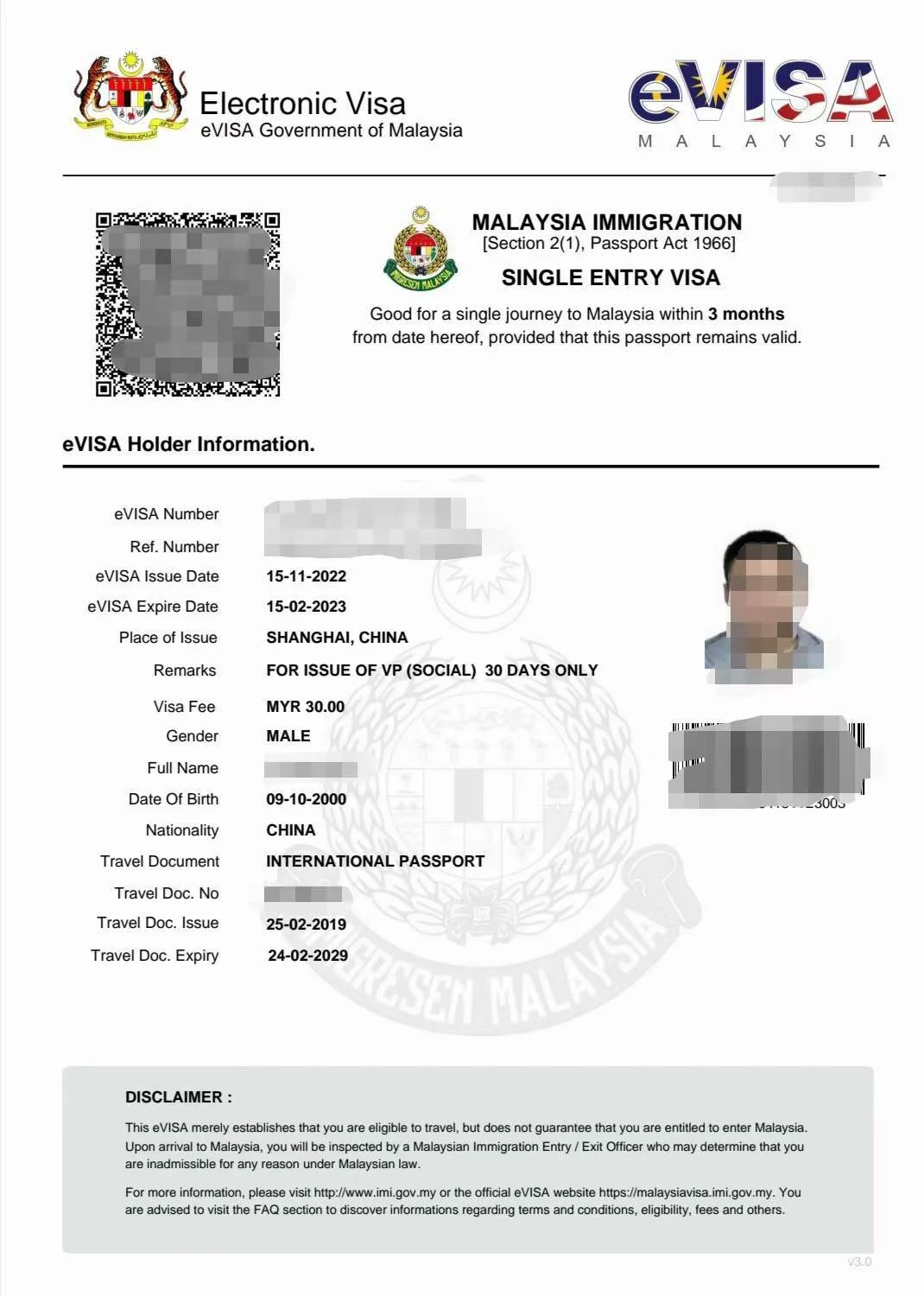 提供电子版材料,预约面签:护照,身份证,照片,马来电子签,疫苗记录