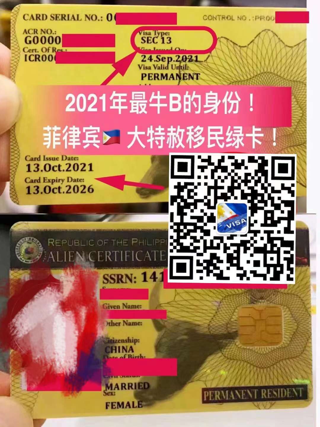 - ✔ 持该绿卡5年后可申请入籍菲律宾