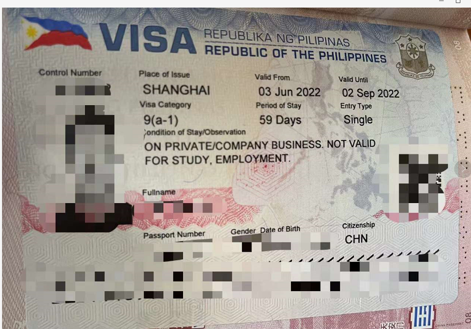 个人临时访问签证:9(A)商务签证 A. 所需材料 ·护照或旅行证件,有效期至少六(6)个月以上,不包括允许在菲律宾的停留时间(复印护照资料页);·中国大陆护照:两 (2) 份签证申请表,并贴上照片;