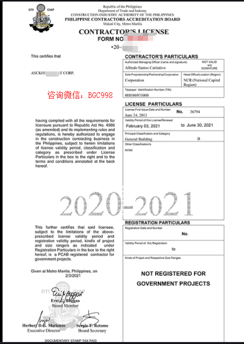 公司能力资质是公司获得的由地方、国家、专业机构、行业协会颁发的相应资质证书:如菲律宾的建筑资质(PCAB),菲律宾的劳务输出资质(POEA),菲律宾的进出口资质等等。