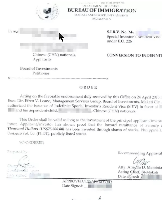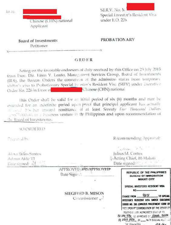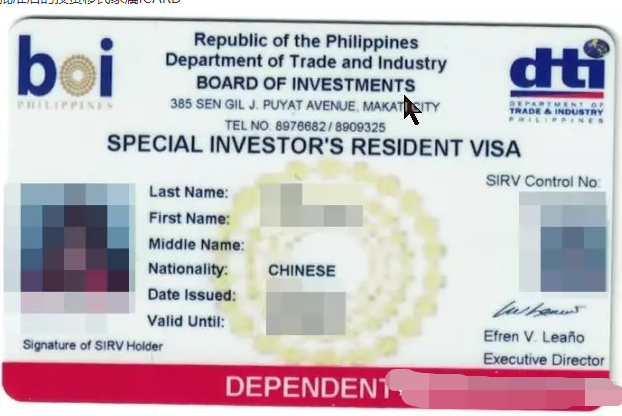 特殊投资居留签证的申请资格菲律宾投资署属于菲律宾工贸部,专权管理菲律宾移民总局签发的特殊投资居留签证(SIRV)。拥有此签证可享有多次进出菲国的签证、永久居留权和免税的优惠待遇。拥有此签证您可享有多次进出菲国的签证、永久居留权和免税的优惠待遇。实际上您只要持SIRV签证便可永久移居菲国。