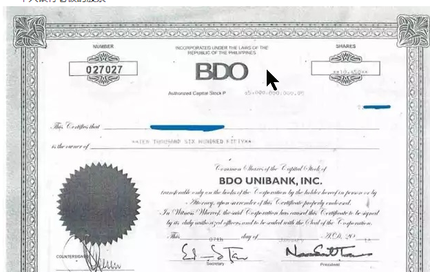 客户所投资的股票(和中国股票完全不同,请不要拿中国思维来考虑菲律宾股票市场) BDO银行的股票