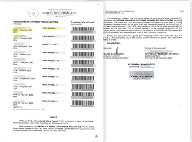 在PWP临时工签失效之前3个月,必须同时进行办理9G或其他工签。于PWP失效之前完成工签办理,必须实卡在手上方视真实有效、合法、上岗! 因菲律宾移民总局联网有PWP办理纪录后,等于清楚你否符合条件正式合法、上岗工作中。